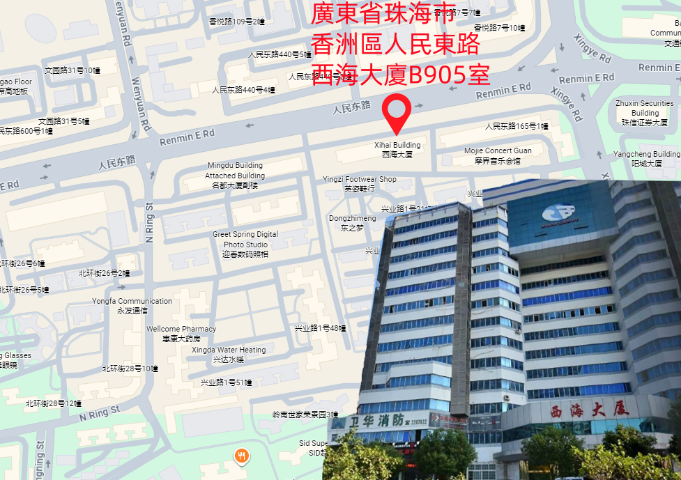 Zhuhai: Room 905,Block B, Xihai Building, Renmin Road East,Xiangzhou District,Zhuhai